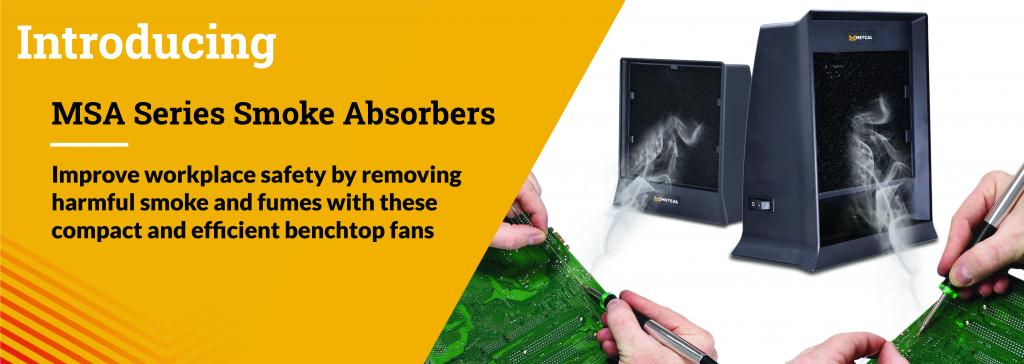 CYPRESS, CA ― Nov. 7, 2022 ― METCAL™, a leader in benchtop soldering systems, announces the release of their new MSA Series smoke absorbers, space-saving compact workbench fans that use activated carbon filters to extract harmful flux fumes and smoke during hand soldering operations.