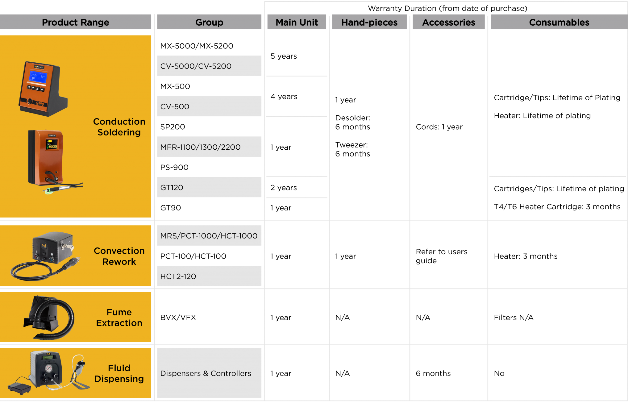 Cartridges/Tips: Lifetime of plating T4/T6 Heater Cartridge: 3 months |